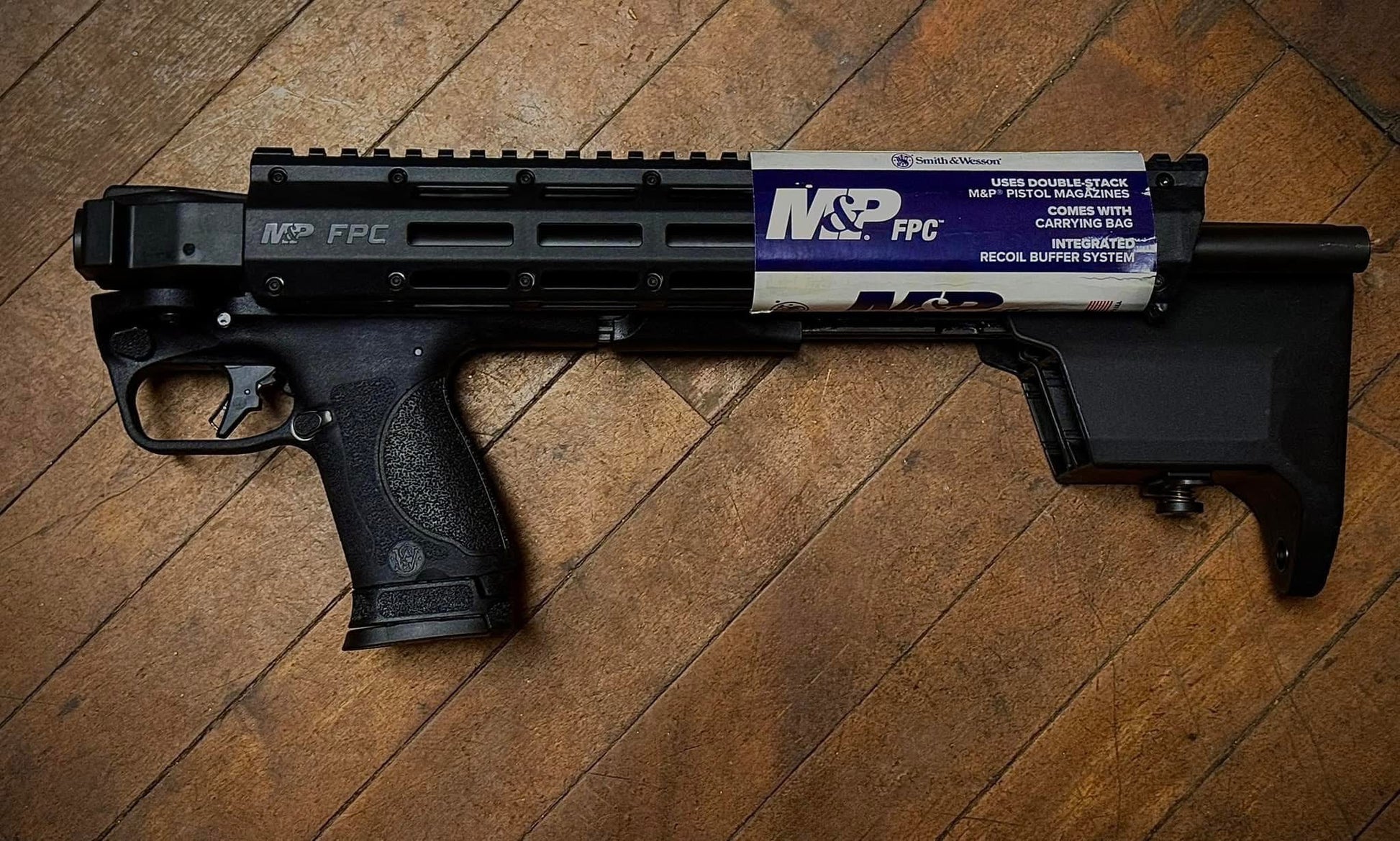 The M&P® FPC is a folding pistol-caliber carbine designed for portability and performance. Featuring a 16.25” barrel, optics-ready rail, and horizontal folding design, it folds to just 16.375” without interfering with optics.